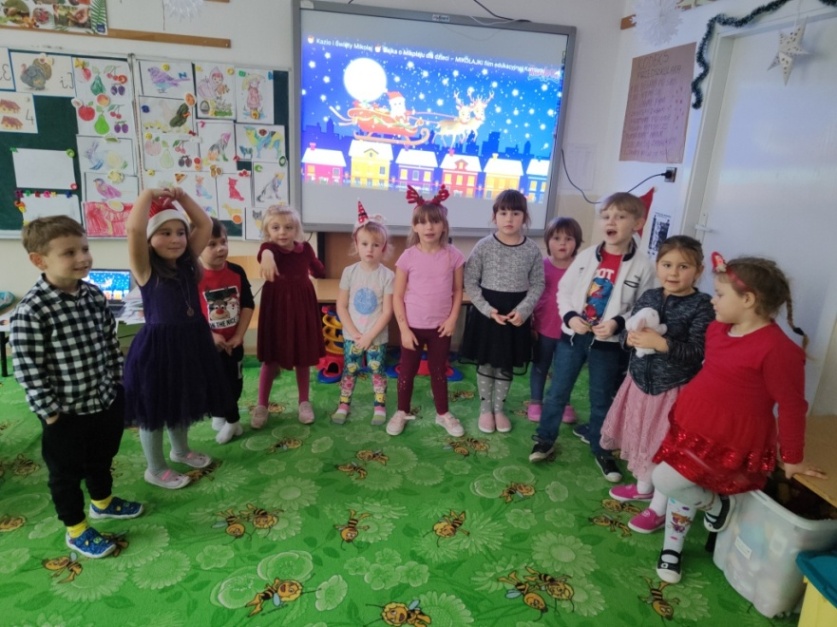 Na początku zapukał do drzwi dzieci z oddziału przedszkolnego, a tam został powitany pięknymi wierszykami i piosenką którą specjalnie dla niego przygotowały. Następnie udał się do starszych klas ,aby wręczyć resztę podarunków.