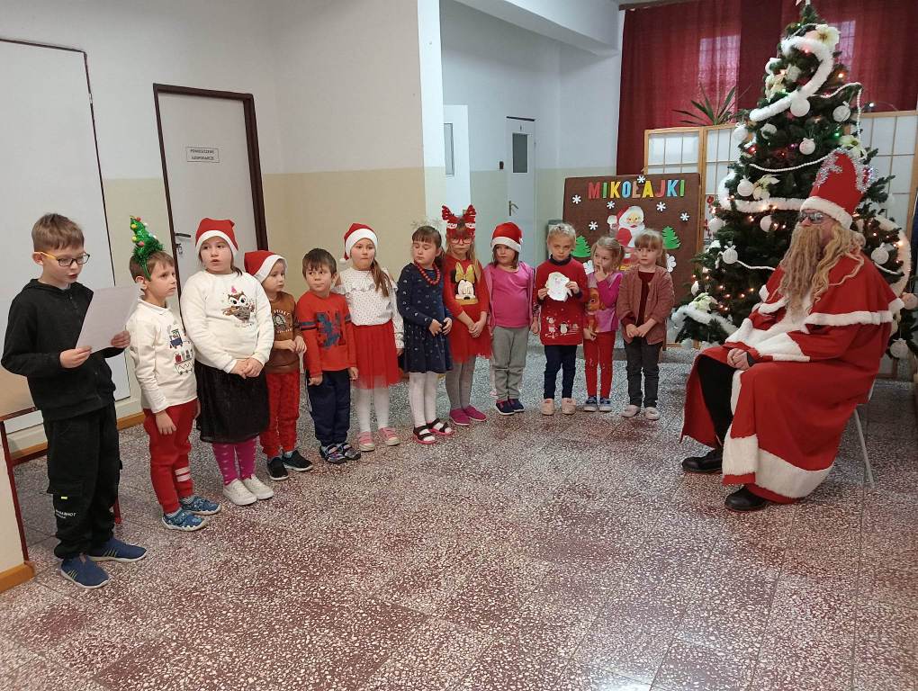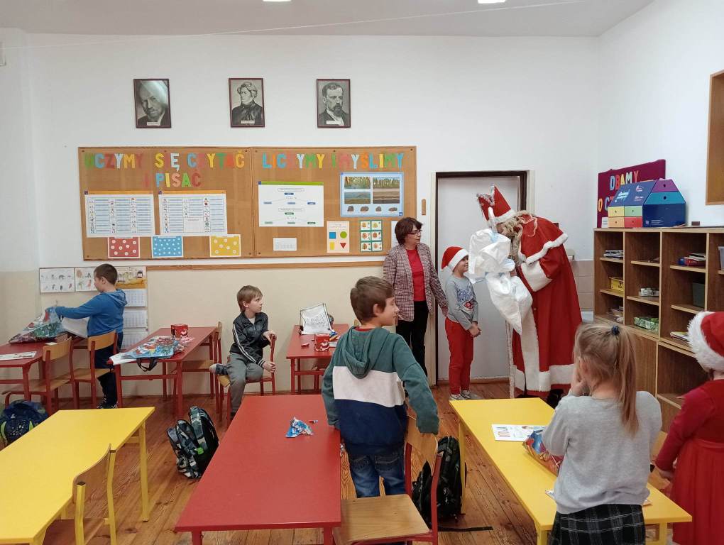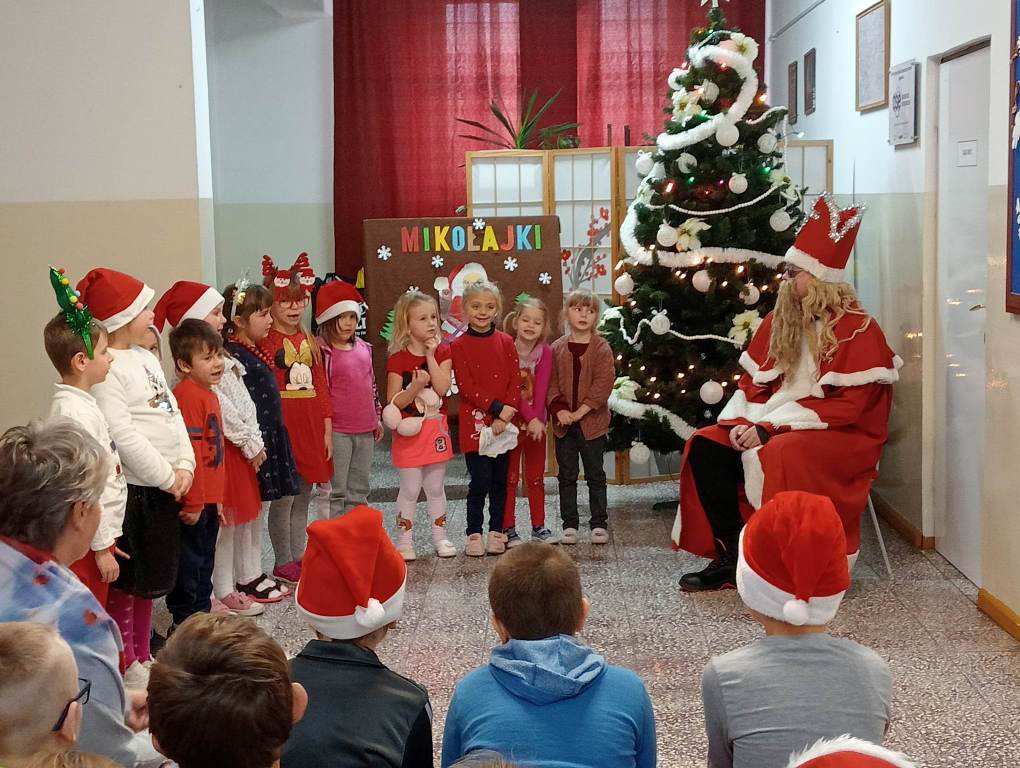 W dniu 6 grudnia Święty Mikołaj z workiem pełnym prezentów przyjechał do naszej szkoły. Oczekując upragnionego gościa dzieci nasłuchiwały dźwięku dzwoneczków, które dochodziły z daleka. Był to nie nikt inny, tylko Święty Mikołaj. Oprócz pełnego prezentów worka, Mikołaj przywiózł ze sobą dużo uśmiechu. Dzieci zaśpiewały piosenkę i wyrecytowały wierszyki, które wcześniej przygotowały. Święty Mikołaj pytał, czy były grzeczne i wszystkim dzieciom osobiście wręczał paczki. Do oddziału przedszkolnego przyniósł też nowe zabawki do wspólnej zabawy. Wizyta św. Mikołaja minęła w bardzo miłej atmosferze i przyniosła wiele radości.