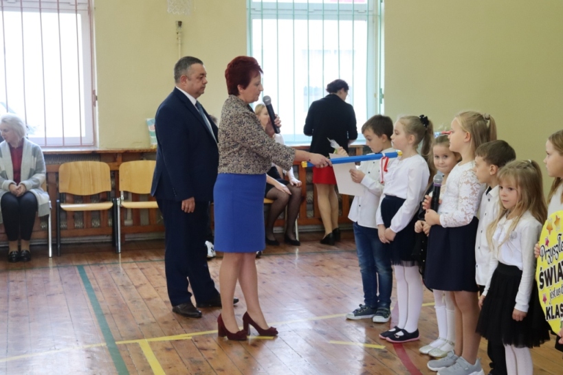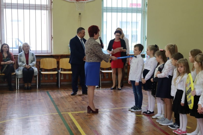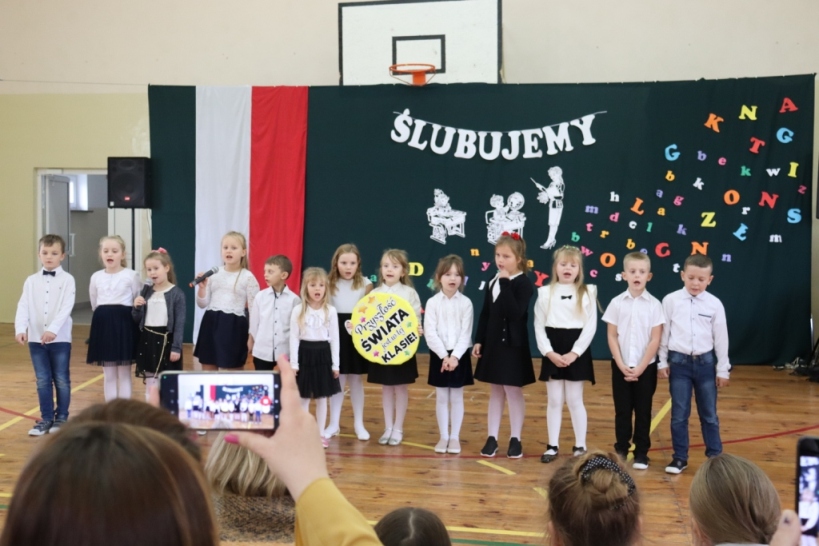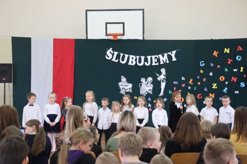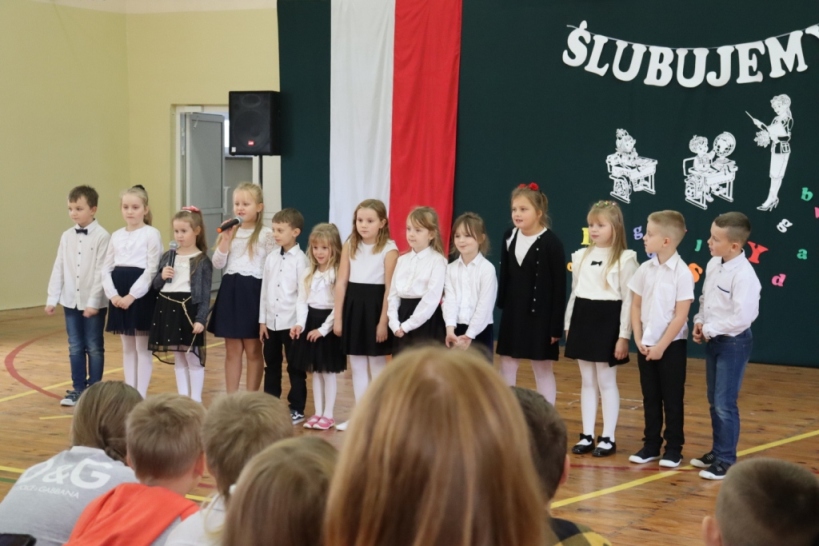 17 października 2023 r. odbyła się w naszej szkole uroczystość pasowania na ucznia. Jest to szczególny dzień, który na długo pozostanie w pamięci każdego ucznia klasy pierwszej. W tym dniu dzieci oficjalnie zostały przyjęte do grona uczniów szkoły. Podczas uroczystości pierwszoklasiści pokazali, że potrafią pięknie śpiewać i recytować wiersze. Najważniejszą częścią uroczystości było ślubowanie oraz pasowanie wielkim ołówkiem przez Panią Dyrektor Jolantę Zawiślak. Pierwszaki głośno i z przekonaniem przyrzekały być dobrymi i pilnymi uczniami oraz rzetelnie wypełniać swoje obowiązki. Wszystkim pierwszoklasistom życzymy wielu sukcesów na nowej drodze obowiązków szkolnych.