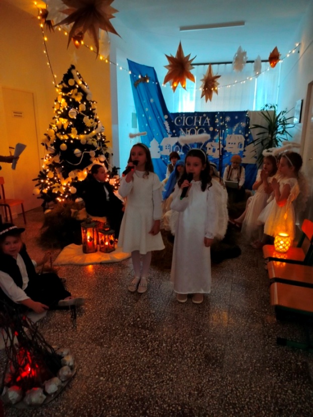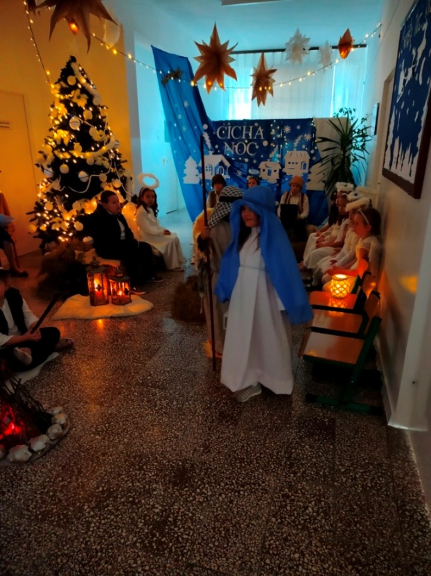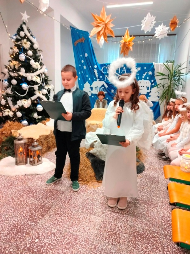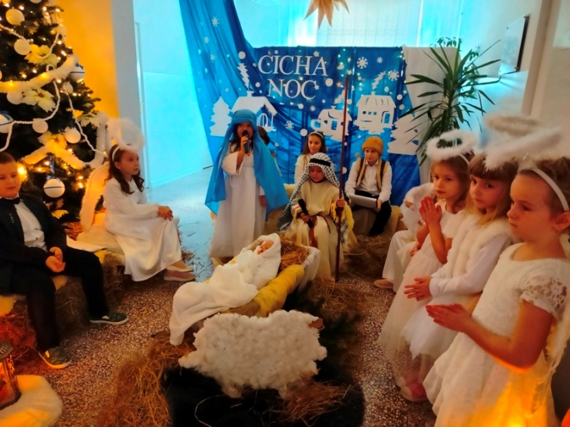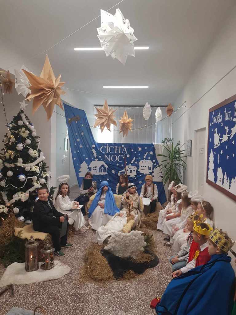 19 grudnia 2023 r. w naszej szkole odbyły się Jasełka Bożonarodzeniowe. Szkolni aktorzy z wielkim zaangażowaniem wcielili się w swoje role, przypominając wydarzenia sprzed ponad przeszło dwóch tysięcy lat. Dzieci z oddziału przedszkolnego wcieliły się w role Maryi i Józefa, pasterzy, aniołów, trzech królów. Uczniowie z klas 1-3 przestawili zwyczaje i tradycje świąteczne, recytowały wierszyki o tematyce świąt. Świetności inscenizacji dodały pastorałki i kolędy nadając radosnego nastroju.