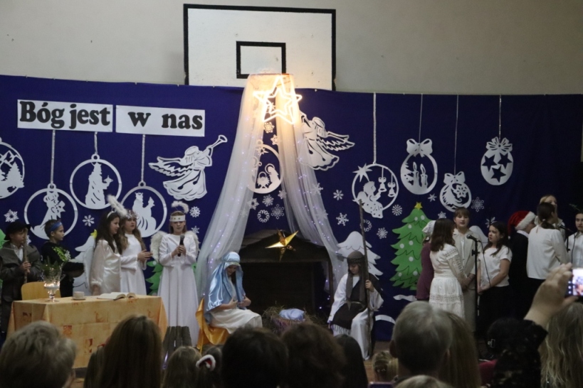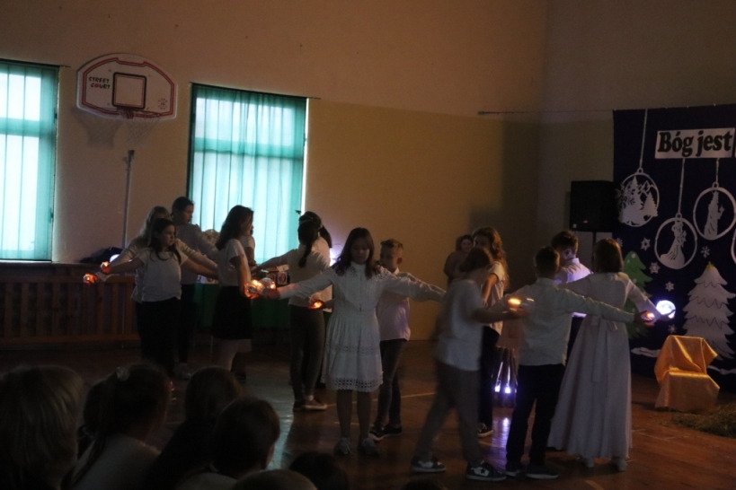 Z grudniowymi świętami wiąże się wiele pięknych tradycji i zwyczajów. Dlatego też 20 grudnia w naszej szkole miało miejsce szczególne wydarzenie - szkolne jasełka. W specjalnie przygotowanych strojach oraz pięknej scenografii młodzi aktorzy – uczniowie klasy IV przedstawili sceny narodzin Chrystusa. Jasełka w wykonaniu dzieci wprowadziły wszystkich w świąteczny nastrój, a uczniowie swym pięknym występem podbili serca publiczności. Piękny śpiew kolęd i pastorałek uświadomił wszystkim i przypomniał o tym, że Święta Bożego Narodzenia są już bardzo blisko.