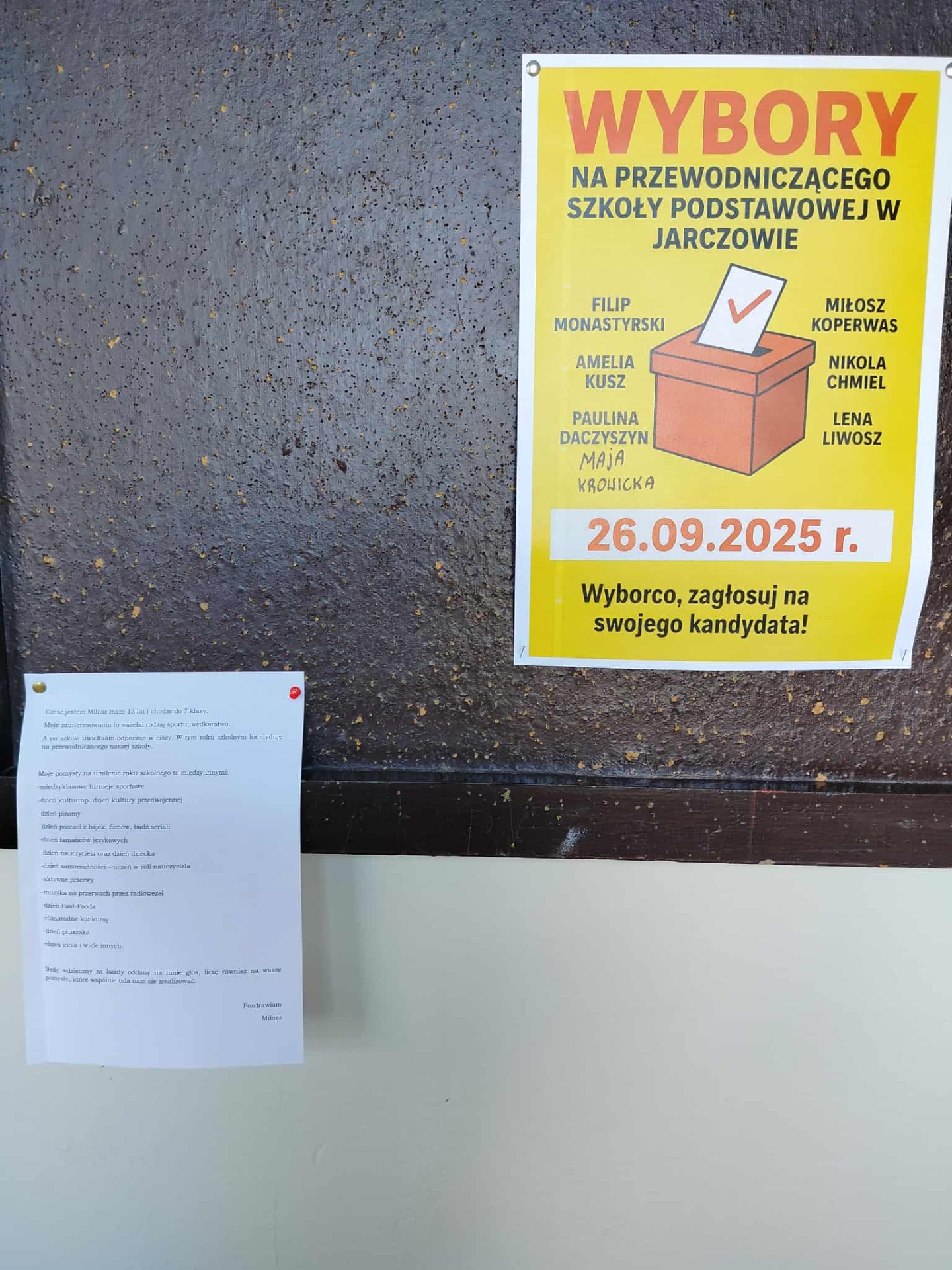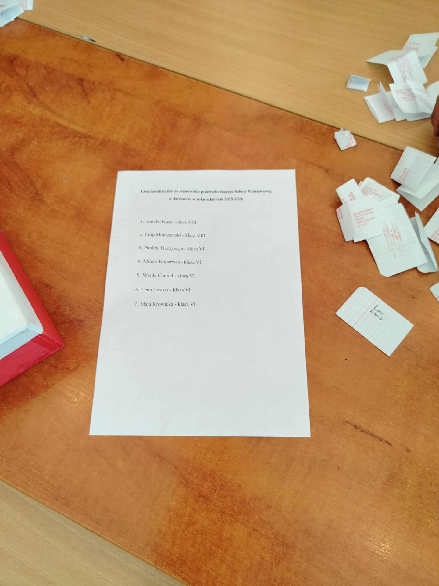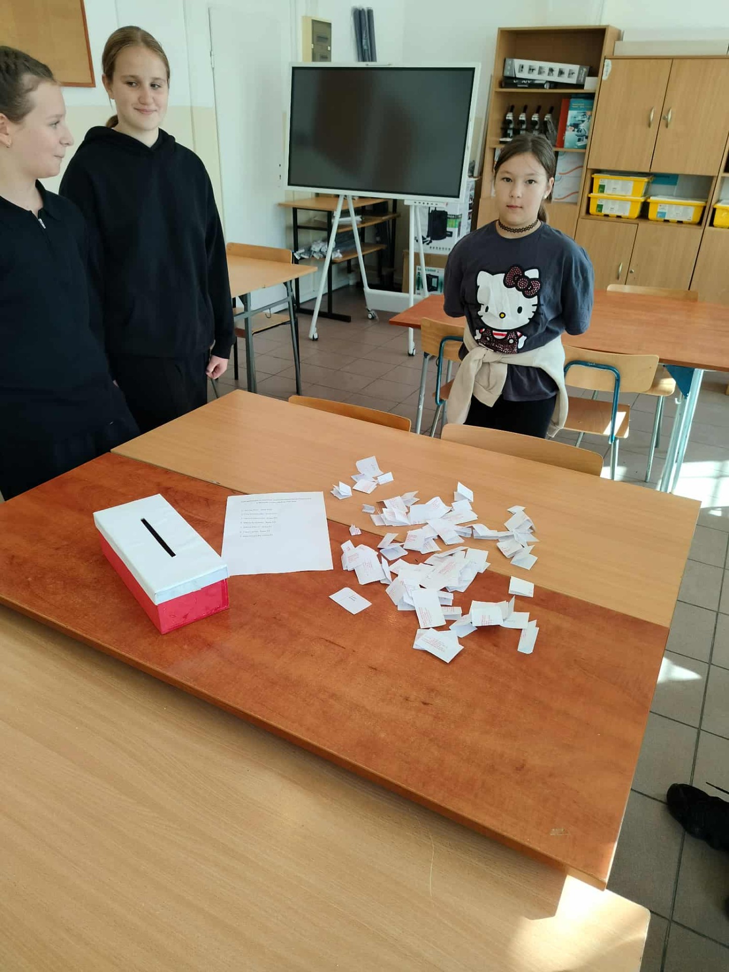26 września 2025r. w naszej szkole odbyły się wybory do SU klas IV-VIII. Uczniowie i nauczyciele głosowali w równych, tajnych i demokratycznych wyborach oddając głos na jednego kandydata z listy. Przeprowadzone wybory poprzedziła ,,kampania wyborcza”, prowadzona przez kandydatów w formie plakatów wyborczych oraz autoprezentacji wygłoszonej przez szkolny radiowęzeł. Po podliczeniu oddanych głosów wyniki wyborów przedstawiają się następująco: Przewodniczącą naszej szkoły na rok szkolny 2025/2026 została Amelia Kusz z klasy VIII, rolę zastępcy przewodniczącej pełnić będzie Lena Liwosz z klasy VI, szkolnym skarbnikiem zostaje Paulina Daczyszyn z klasy VII, zaś funkcja szkolnego sekretarza pełnić będzie Miłosz Koperwas z klasy VII.