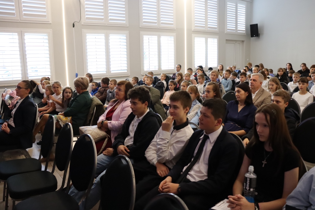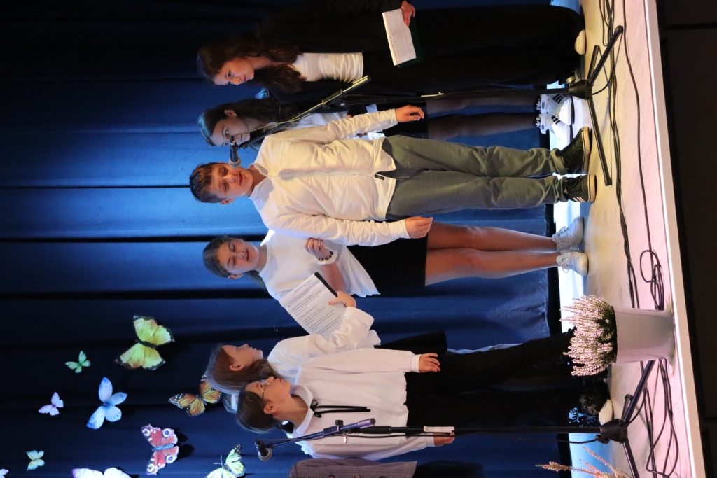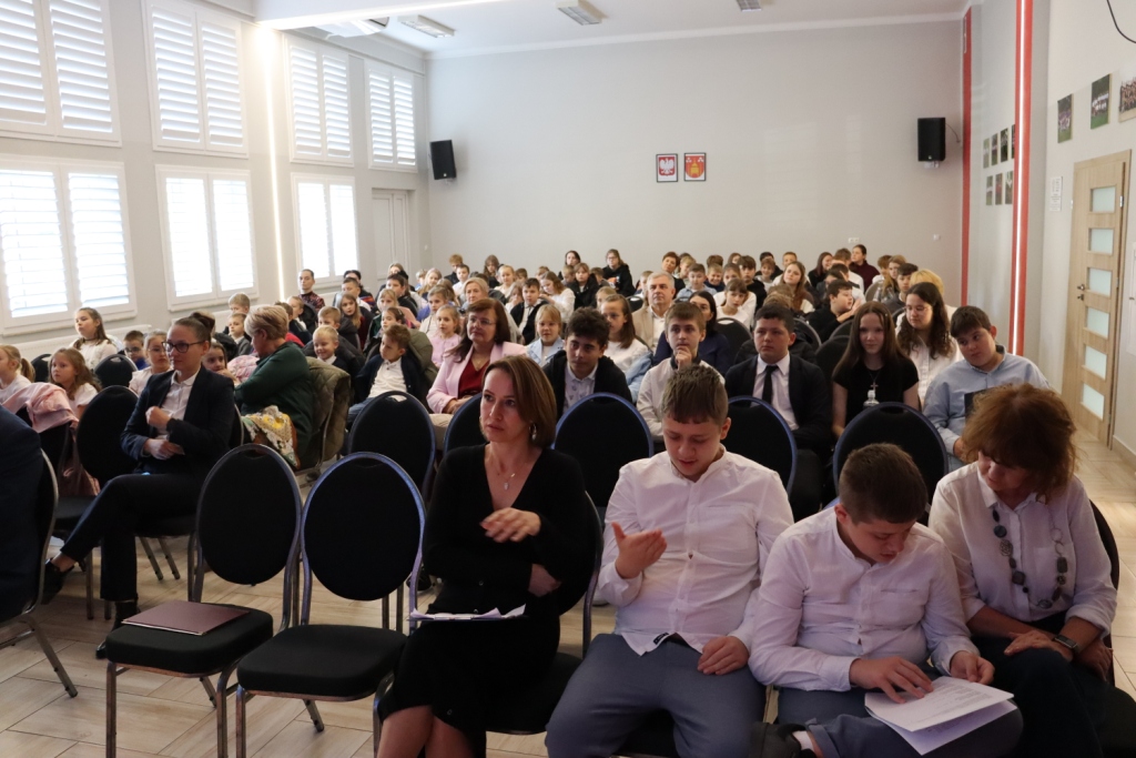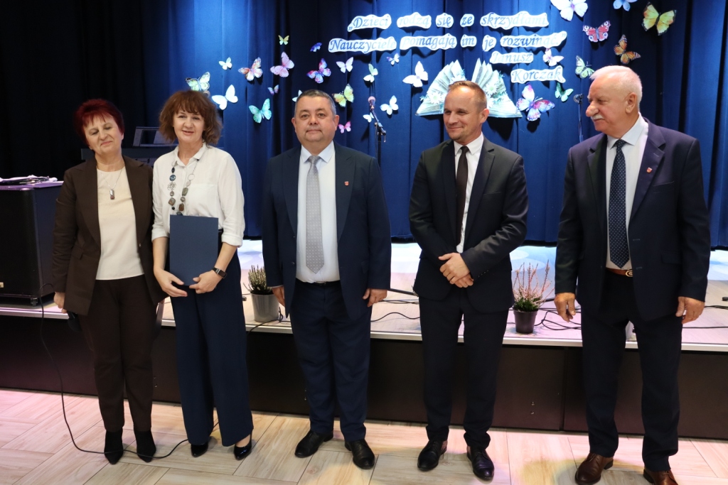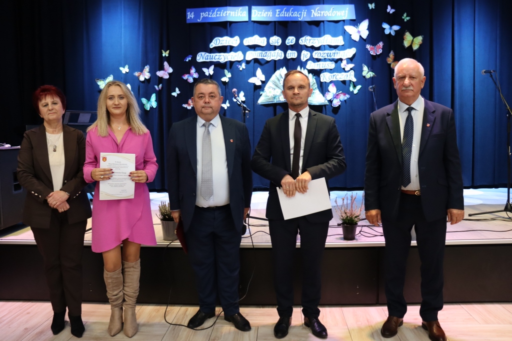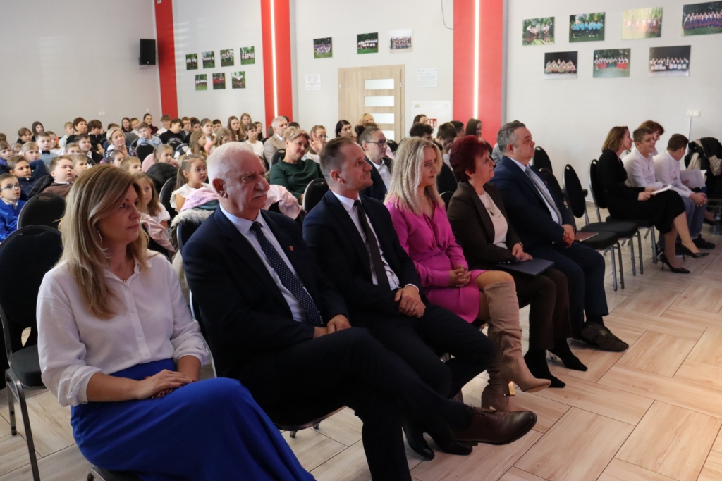 13 października w naszej szkole świętowaliśmy wspólnie Dzień Edukacji Narodowej. Wśród zaproszonych gości znaleźli się: Wójt Gminy Jarczów Pan Tomasz Tyrka wraz z Sekretarzem Gminy Panem Pawłem Mroczkowskim oraz Przewodniczącym Rady Gminy Panem Lesławem Rachańskim. Z tej okazji cała społeczność szkolna wzięła udział w uroczystej akademii, która stała się pięknym wyrazem wdzięczności wobec nauczycieli i pracowników szkoły. Uczniowie przygotowali inscenizację, w której wspaniale zaprezentowali swoje talenty recytatorskie i wokalne. Program artystyczny był pełen refleksji i ciepłych słów kierowanych do pedagogów. Uczniowie włożyli w swój występ wiele serca i zaangażowania, a ich występ został nagrodzony gromkimi brawami. Wiele ciepłych i miłych słów popłynęło w stronę nauczycieli i wszystkich pracowników szkoły. Uczniowie podkreślili swoją wdzięczność za codzienny trud, cierpliwość, troskę oraz poświęcenie, jakie nauczyciele okazują każdego dnia.Nie zabrakło również symbolicznych gestów uznania – przedstawiciele Samorządu Uczniowskiego wręczyli pedagogom słodkie upominki, dziękując im za ich pracę i serce wkładane w wychowanie młodego pokolenia. W części oficjalnej głos zabrali Pani Dyrektor Jolanta Zawiślak oraz Pan Wójt Tomasz Tyrka, którzy złożyli serdeczne życzenia wszystkim pracownikom szkoły. Podziękowali za trud, zaangażowanie i pasję w kształceniu oraz wychowaniu młodych ludzi. Ciepłe słowa wdzięczności skierowano również do pracowników administracji i obsługi, których codzienny wysiłek sprawia, że szkoła funkcjonuje sprawnie i jest miejscem przyjaznym dla całej społeczności. Uroczystość przebiegła w ciepłej, pełnej radości i wzruszeń atmosferze, pozostawiając w pamięci uczestników wiele miłych wspomnień. Serdeczne podziękowania dla Pani Katarzyny Dziura Kierownika Samorządowego Centrum Kultury w Jarczowie za udostępnienie Sali na tę uroczystość.