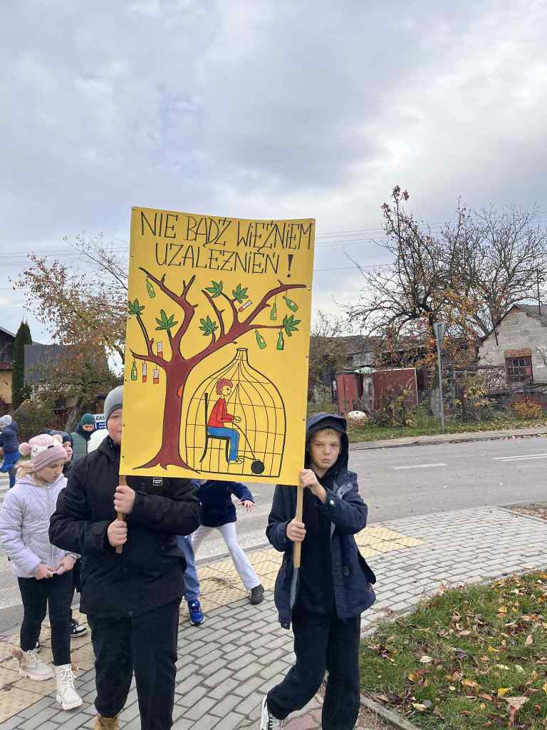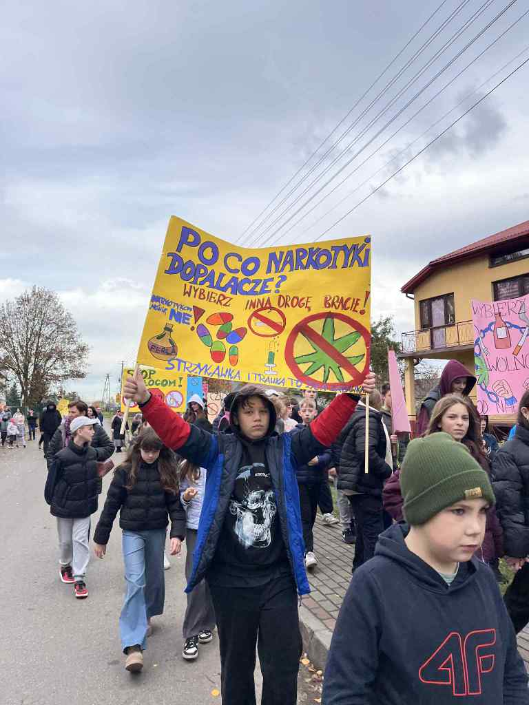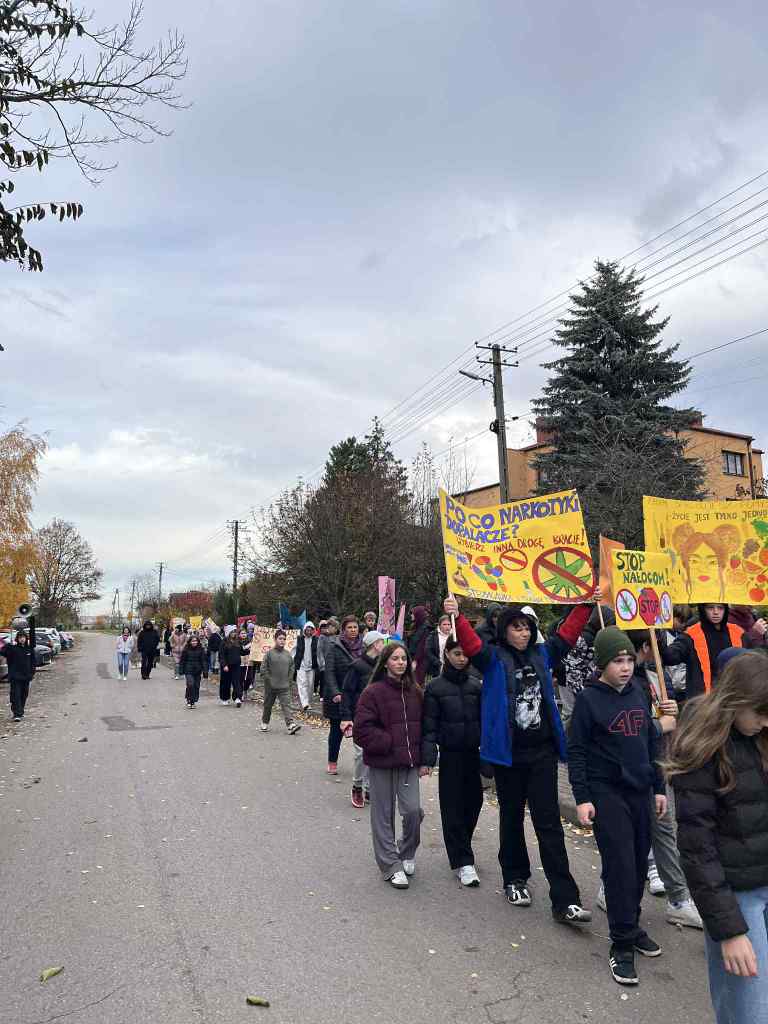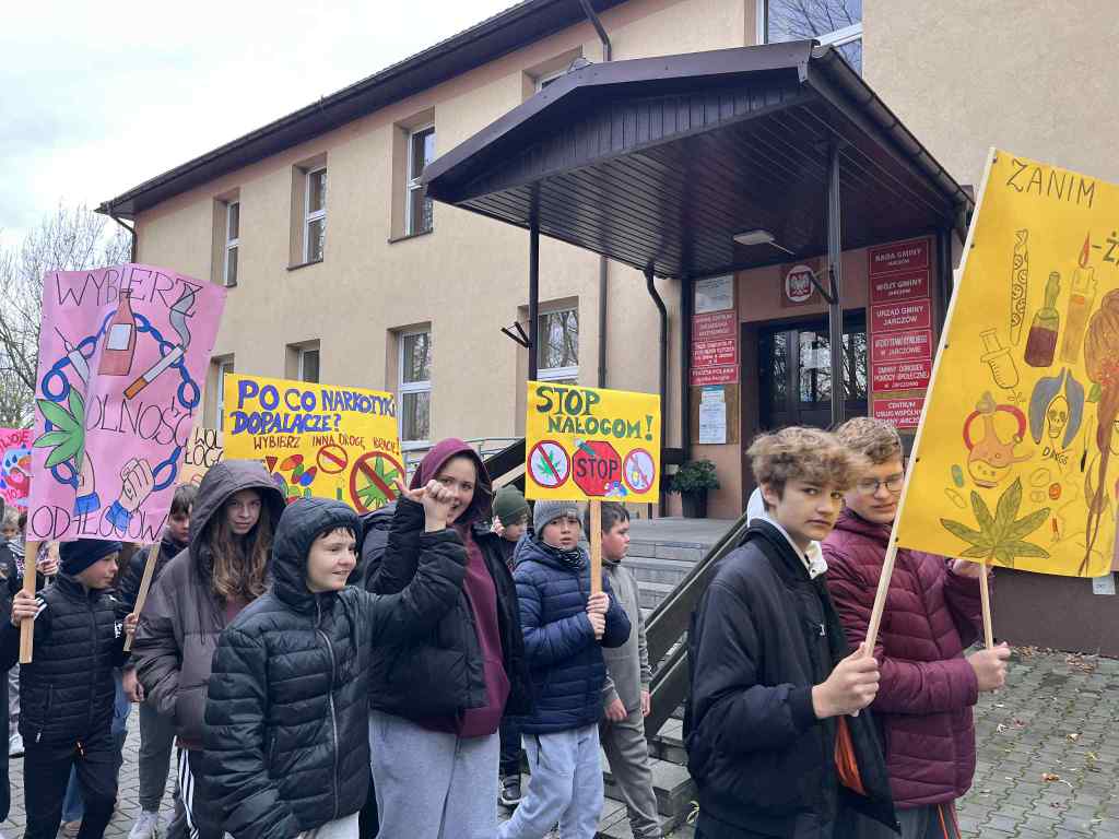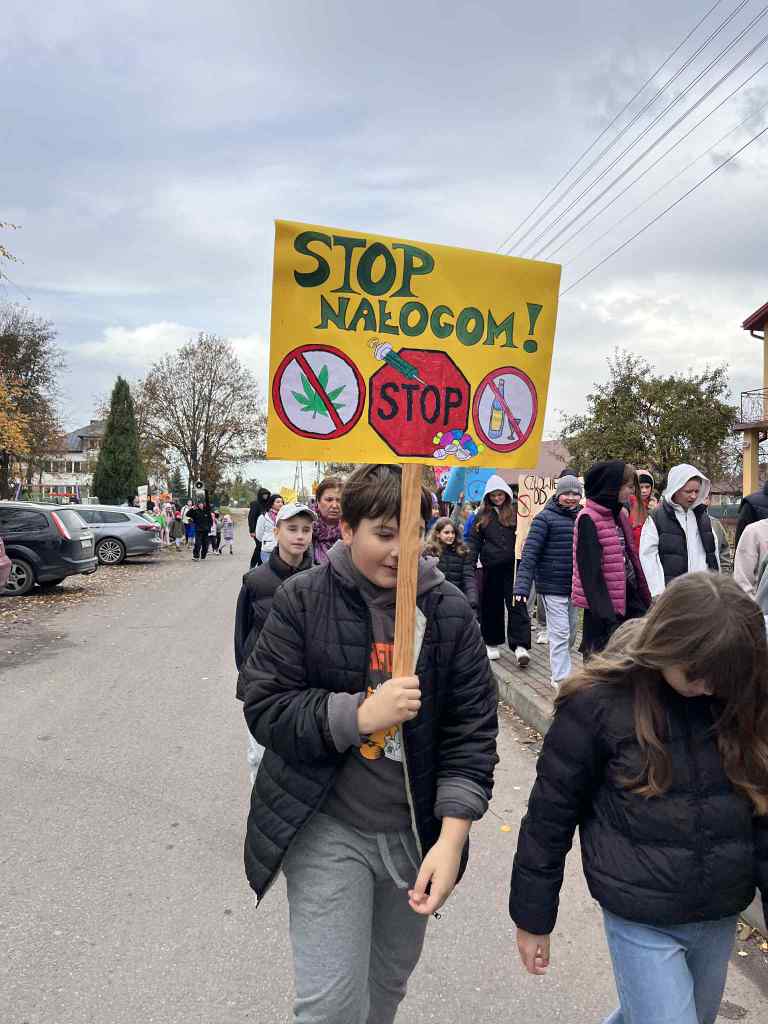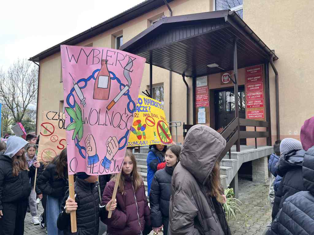 Uczniowie przeszli ulicami Jarczowa niosąc przygotowane wcześniej plakaty mówiące o szkodliwości używek. Głosili również hasła i rymowanki promujące zdrowy i wolny od nałogów tryb życia.