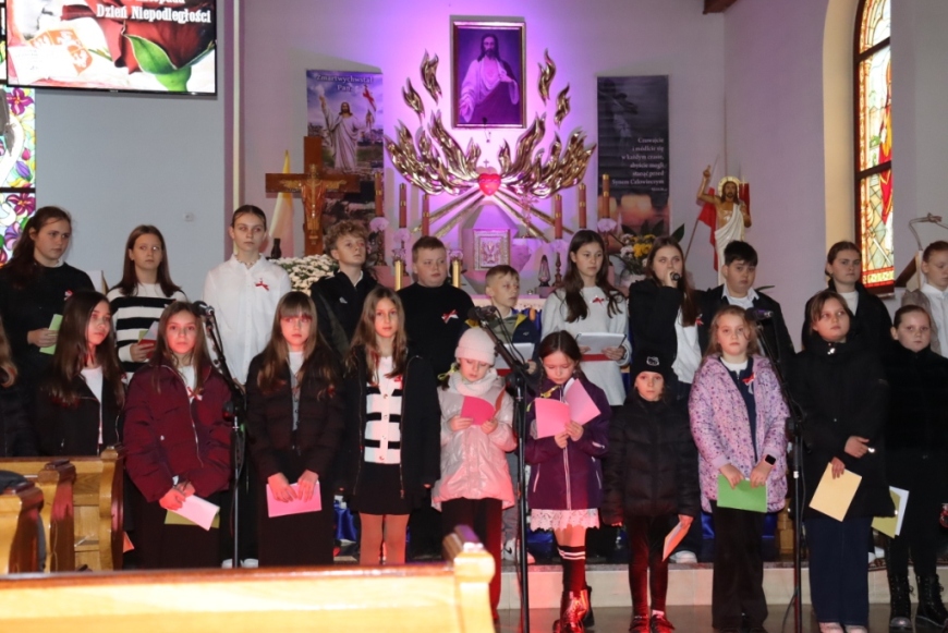 W wydarzeniu wzięli udział uczniowie klas III, V, VI i VII, którzy poprzez występy słowno-muzyczne ukazali najważniejsze chwile w dziejach walk o wolność i niepodległość Polski.